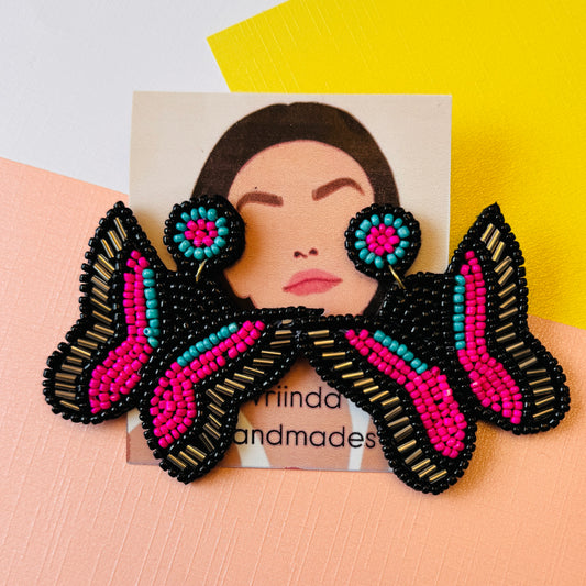 Beaded Butterfly Statement Earrings